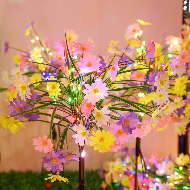 🌼Set 2 lampi solare decorative in forma de buchet de margarete pastelate – adauga un farmec de poveste gradinii tale! Fiecare lampa are o inaltime de 70 cm si este echipata cu un panou solar integrat, care incarca automat bateria interna pe timpul zilei, pentru o iluminare colorata magica noaptea.